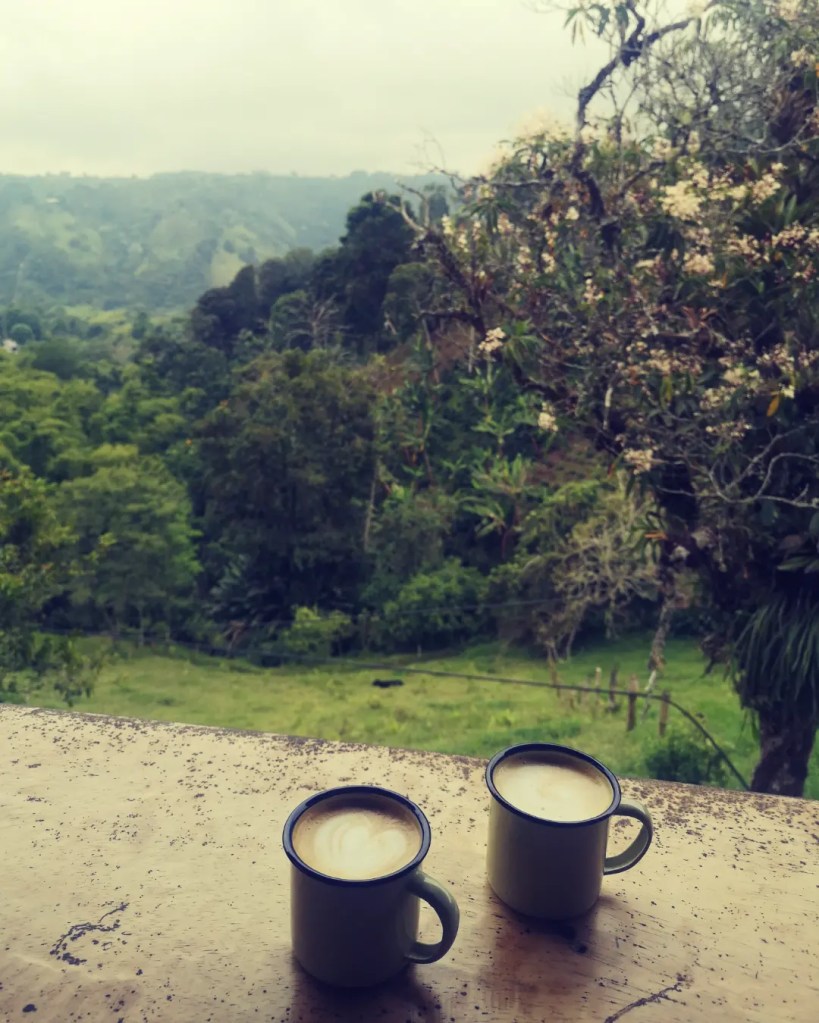 Today we got up for a breakfast of kings in the hostel, pancakes no less!! Then we headed out to walk to a nearby coffee farm to take a tour. We walked down a country lane with pretty views of luscious green rolling hills on all sides. After an hour ish, we arrived at the farm, having crossed paths with both cows and yellow jeeps along the way. We got a coffee before the tour began and enjoyed looking out at the vista before us, multiple coffee farms reaching down the valley and as far as the eye could see. Beautiful.